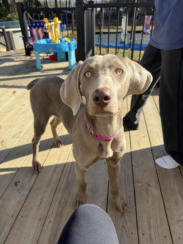 message jerrimills about this ad 6 month old female Weimaraner. Silver, tailed docked, dew claws removed, not spayed, very sweet girl. With my daughters busy schedule we dont have the time she deserves. She needs a yard to run and burn energy. Shes good with kids and other dogs. Never been around cats. We would like to ensure she goes to a great loving home. Preferably someone who is knowledgeable on Weimaraner breed. |