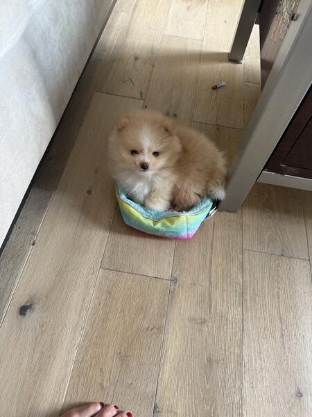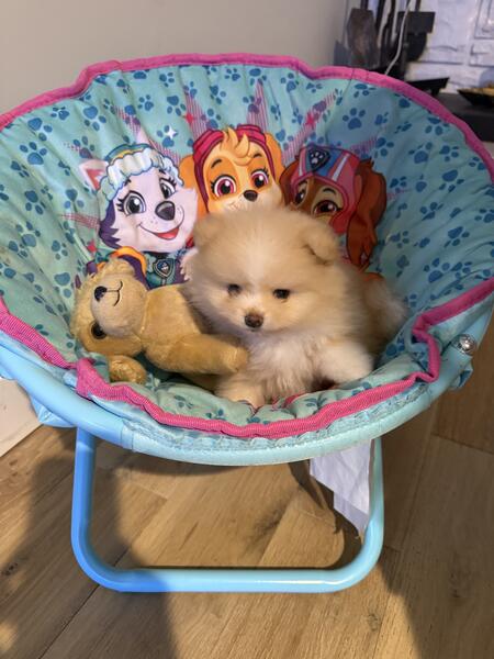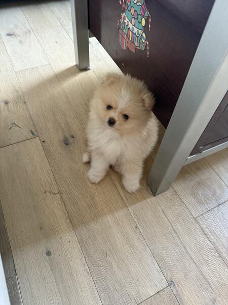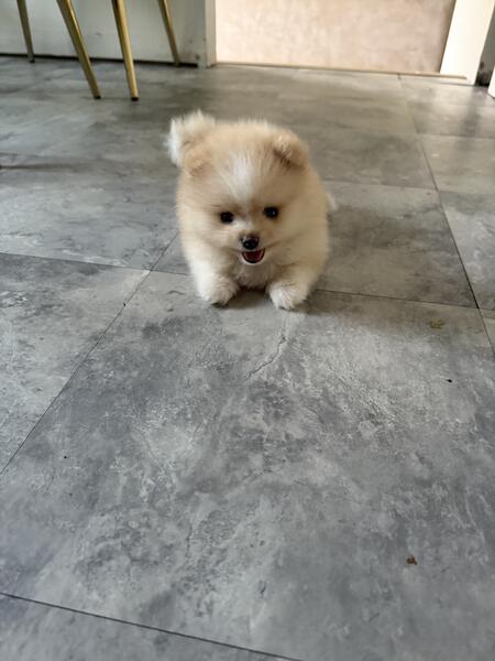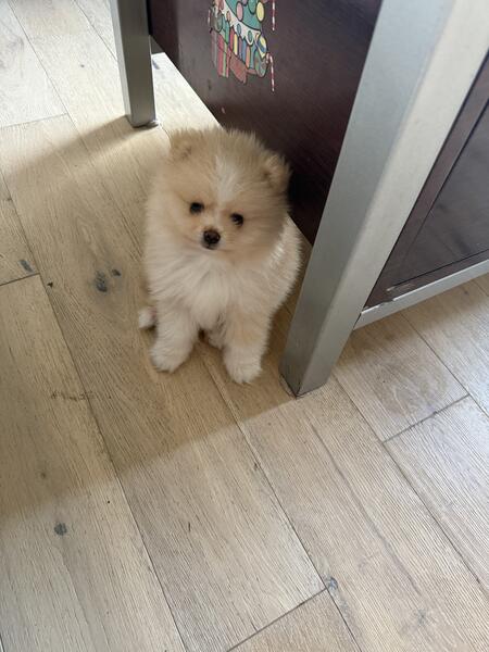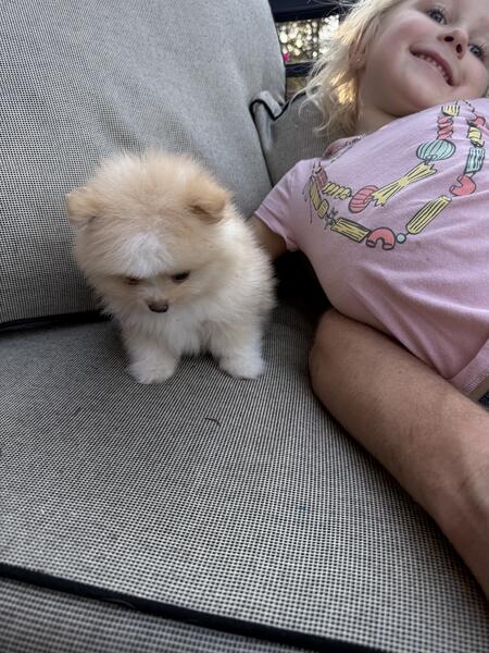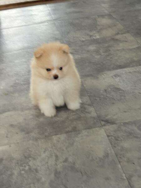 message dbwsk701 about this ad pure breed cream pomeranian male puppy, teady bear face not foxy, short legs and face, parents are fluffy balls and our loved pets, both parents are akc and 5-6 lb, puppy will be sold as PET only to loving family not for breeding! he is raised with small kids and cats, will be dewormed and vaccinated leaving us, coming with goodie bag and vaccination record ready first week of october, located barrington illinois more info 773 seven zero one 88 seven three |