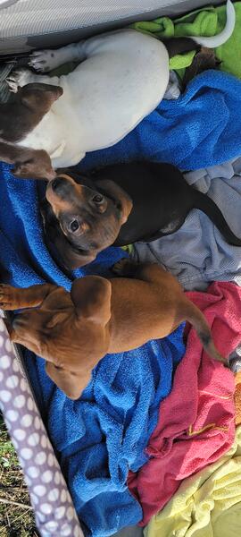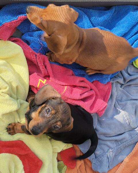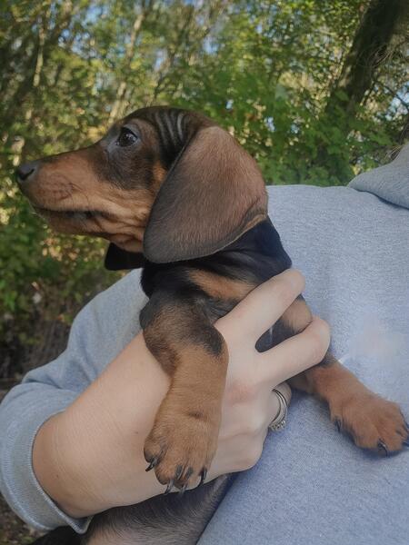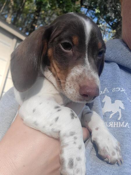 message danesndoxies about this ad Miniature dachshunds puppies ready for thier forever families. All are shorthaired smooth coats. Have been dewormed, had 1st vaccinations, and are weaned and ready to go. No scammers, we deal in person and in cash only. Pups are prespoiled, good with other animals and kids. Solid Color pups are females 1200 each Piebald puppy is male asking 1500 |