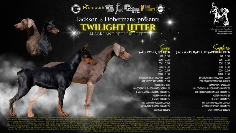 message kaleejackson about this ad One of the handful of litters in the US from health tested parents that will be DCM1 DCM2 DCM3 DCM4 CLEAR! Parents are OFA health tested. Both parents carry an AKC fitness title. Blacks and reds expected. Medium size to large size. Dam 7/8 Euro and is 75 lbs. Sire is American and is 93 lbs. Puppies leave AKC limited registration, microchipped and registered with AKC REUNITE, dewormed, vaccinated, and started on socializing. Ear cropping is available for an extra $500. I do not sell to breeder homes. Spencer IN |