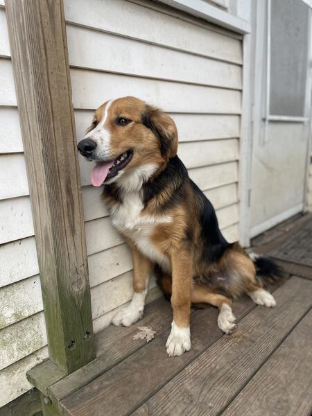 message grandoakses about this ad At eleven months of age, Hondo is a large, affectionate pup with a herding drive. He would thrive with work to do and farm activity. We think he will be over 70 pounds when he matures. He loves to go with us to do farm chores with both cattle and chickens. At 6 weeks old, he was trying to move the cows and hens. He is a happy dog with a touch of stubbornness and a love of belly rubs. Hondo is friendly and happy when he meets new people. For reasons unrelated to this dog (probably economics we have not sold Hondo or his brother. Unfortunately we have had very few inquiries about the remaining pups in this litter. They are fantastic dogs, and they will be wonderful companions and helpers for their new families. Basic facts about this puppy - Gender: male Birthdate: 4/30/2024 Color pattern: saddleback (a type of tricolor) Pedigree: Shiningers Ruthie x Town & Countrys Cowboy of Endurance Registration(s English Shepherd Club, UKC eligible MDR1 status: normal/normal by pedigree No vaccinations because we choose to leave that decision to the new owner. Wormed with Pyrantel from our veterinarian Ruthie (the dam/mother) is very laid back, so much so that she sometimes acts like an older dog even though she is only four years old! Cowboy, the male that sired this litter, is biddable, eager to please and athletic. Both parents are very smart, and neither is given to unnecessary barking. The puppies are healthy and growing well. We will worm the puppies twice before they leave our farm. Additionally, we do not vaccinate the puppies because we prefer to allow each new owner to make that decision for their puppy. These puppies have been raised on our farm, and basic training has been started (i.e. sit, come, wait, etc They have met a variety of people, including children. About the English Shepherd breed: As both companion and working dogs, the English Shepherd excels at gentle protection and quick intelligence. Also known as the "farm collie, English Shepherds enjoy being with their people, thus earning them the nickname of English shadows. One of the characteristics we most like about the English Shepherds is their temperament. This particular herding breed is frequently called English Shadow because the dogs like to be with their owners. They tend to be laid back when compared to a Border Collie and without being high-strung like an Australian Shepherd. Generally, English Shepherds do like to know the rules/expectations and to have everything in its place. About our English Shepherds: Our dogs are raised on a small farm with various livestock and are thereby accustomed to the natural world. They are both companions and co-workers on our farm. Regarding our puppies, we strive to provide resilient and healthy dogs suitable to both town and country living. For additional information about our English Shepherds, please visit our website at www.grandoaksfarm.net. message grandoakses about this ad |