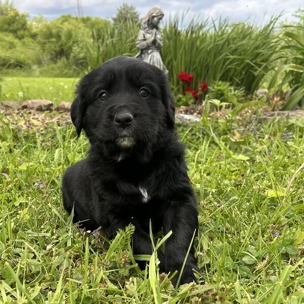 message happydogs about this ad ALL PUPPIES ARE CURRENTLY SPOKEN FOR, PLEASE CONTACT US TO JOIN OUR WAITING LIST. We are hands-on, family breeders. Pups are handled daily by ourselves, our children, and our 3 year old granddaughter. We implement early potty training techniques and stress early obedience training. (Our pups are even taught to sit by the time they leave us at the age of 8 weeks We have received positive feedback from our puppys families over & over again. You may read many of their comments on our Facebook page @ Black Bears Golden Newfies. CURRENT LITTER- Parent Info: AKC Golden Retriever Clover x Purebred Newfoundland Doyle Clover is 100% English Cream (White) Doyle is 100% Newfoundland Puppy Info: Puppy Birthdate: April 18, 2025 Estimated Leave Date:June 13, 2025 1st Shots/Vet Check: Completed at age 6 weeks GOLDEN NEWFIES- Golden Retriever x Newfoundland crosses make excellent family dogs. They are a favorite among young, active families who consistently described this mix as "When it's time to get up and go, they go. When it's time to chill, they can do that too Golden Newfies also make excellent therapy dogs. We have multiple puppies that have gone into service/therapy work. While Golden Retrievers and Newfoundlands each have breed specific health concerns, the crossing of the two breeds creates a situation known as Hybrid Vigor. The Golden Newfies life expectancy is 12-14 years! (A huge improvement over the Golden's 10-12 years and Newfoundland's 8-10 years Their full grown size ranges 80-120 lbs. message happydogs about this ad |