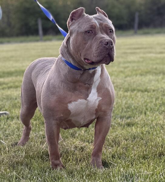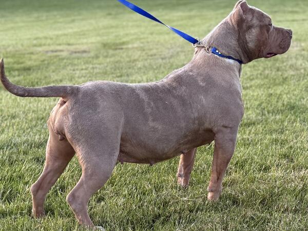 message mthompsoniii about this ad We have a lilac Merle adult female has had one litter was an excellent mother and produced some really nice pups. she is a 3 year old standard female her mother and father were both XLs but she is a standard maybe a smaller XL.should be in heat any day now. Very good disposition loves all people gets along well with other dogs very nice structure Very powerful built female would make great breeder female. We are just getting out of the bullies to focus on our protection dogs. These are updated pictures taken. Please call or text anytime 208-353-8752 with serious inquiries |