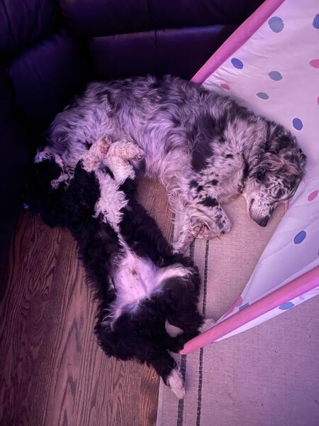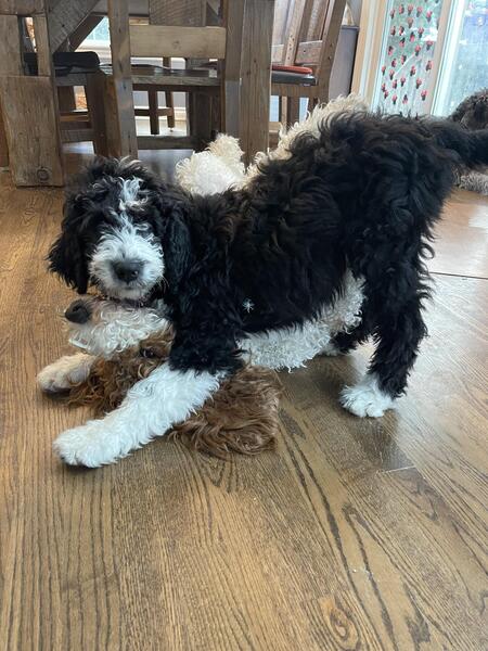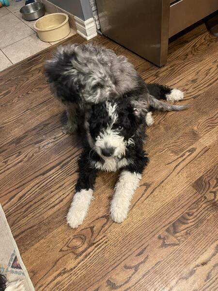 message cdncn760 about this ad update - Loki the blue merle has been sold, only Panda is for sale Australian Shepard and Poodle mix, Born October 14th, we have 2 male Aussiedoodles, one black and white and the other is full blue Merle. They are nonshedding and will be approximately 50lbs when full grown. We are asking $800 each. They have had both sets of puppy shots and are potty trained and ready to go home with a small care package of puppy food, toys, collar and leash. Panda - is black and white and is a big sweetheart, loves to play with his brother and also lay around and cuddle. Loki - is blue merle and loves to give chase. He is very loyal, comes to his name already and would make a great ball retriever. We are a small in-home breeder and raise all of our puppies as our own around our 5 kids and other animals. We provide well-acclimated puppies for loving homes. We breed about 2 litters per year of AussieDoodles, CaviPoo and soon Goldendoodles. Please call or text Chris @ 248-755-3551 message cdncn760 about this ad |