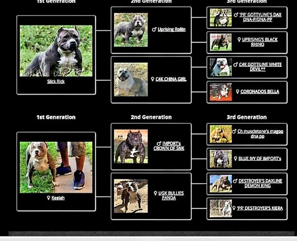 message nbkmel about this ad 3yr old female Ukc Purple Ribbon Registered, 3x Magoo , 2x Up Rising Rolling, Gottiline White Devil, Razorsedge Cali Nuggs, just to name a few never been breed yet. |