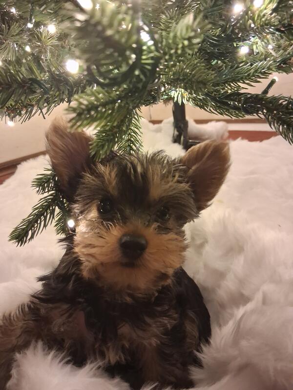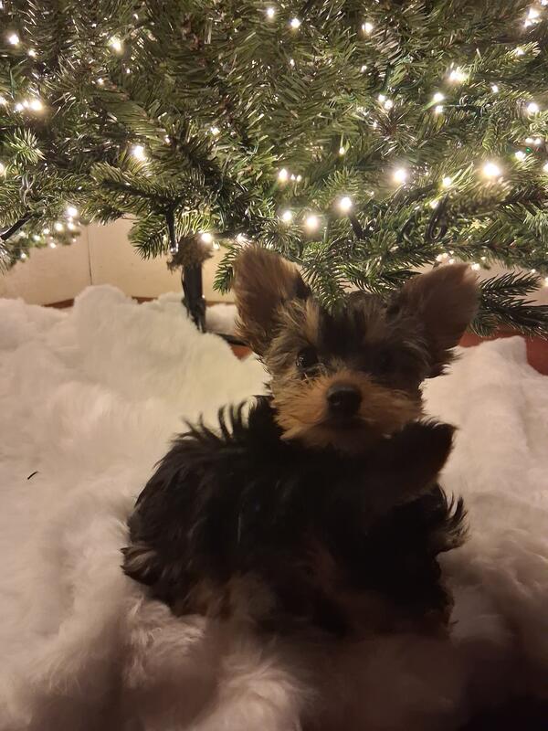 message cvlchc1188 about this ad Christmas time Yorkshire Terriers 2 F Babies with Tails docked. Will come home with Portable Play Crate pop up kennel with pad. Also puppy will come with soft side carrier food bowls blanket toy some puppy food and pee pad; which they are currently being pad trained. Full set to help with Baby's transition go to new home. Puppies have had Full Vet wellness exam and 1st series of vaccinations These will be small around 5-6 pounds. Parents on site. For more information text or call. 405-824-9674 |