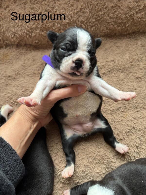message kingsakcbt2019 about this ad Sugarplum is a black and white Boston Terrier with long white front socks and a white belly. She was born right before Christmas on 12/13/2025 and thus the name Sugarplum just stuck like the sweet little thing she is. Will this little sugarplum fairy magically appear in your home soon? She's looking for you to call her your own. Sugarplum's momma is River, a blue/white bostie, and dad is Kylo, a red/white bostie. She comes with: -our healthy pet contract (this will be emailed to you prior to purchase and protects all involved) -vet cleared exam with fecal and first vaccinations at 6 weeks (vaccination record to take home) -AKC registration papers -comfort blanket that smells like momma -treats -puppy food -toy Our puppies will receive their vet exam and vaccination(s) at 6 weeks and will be available to go to their new homes at 8 weeks. |