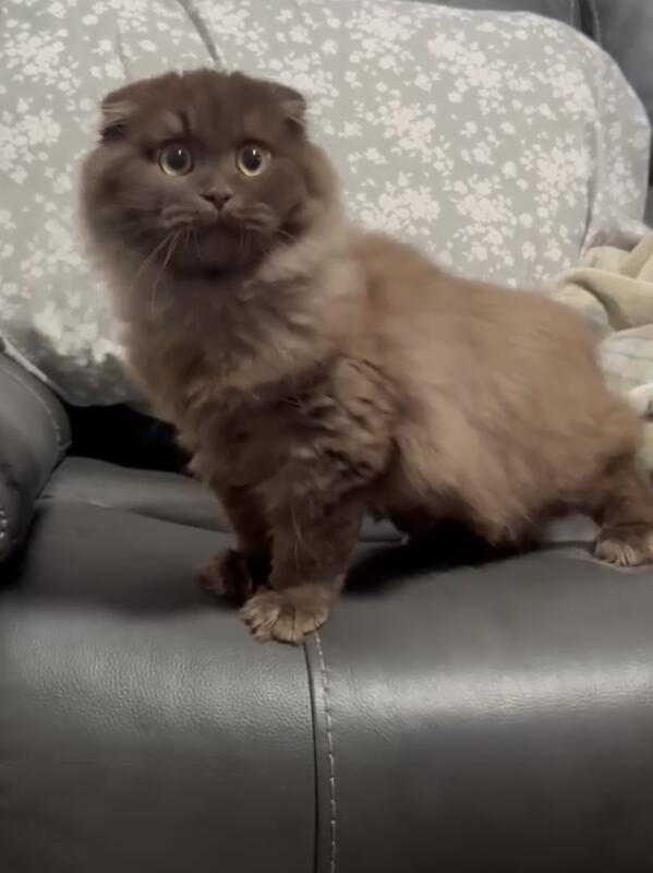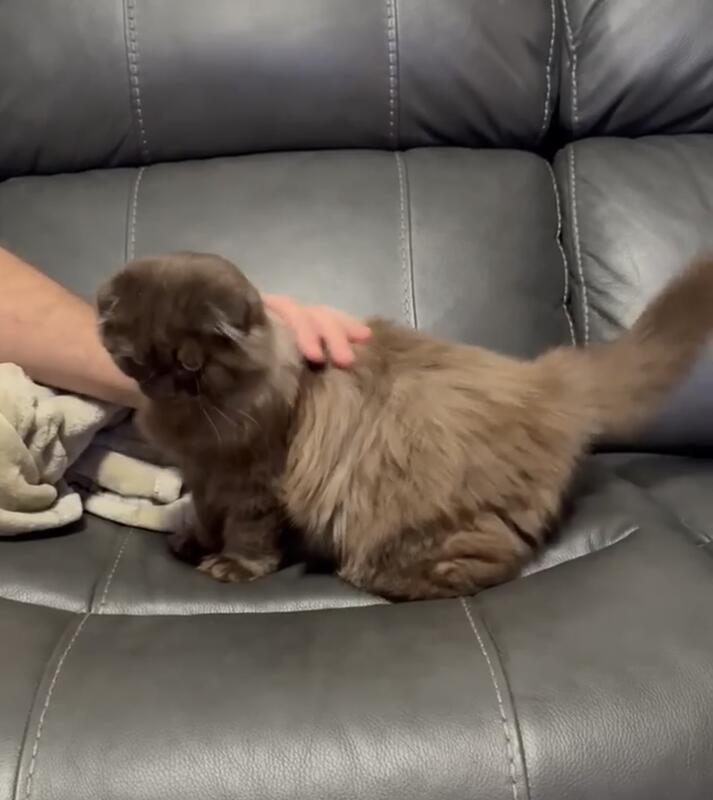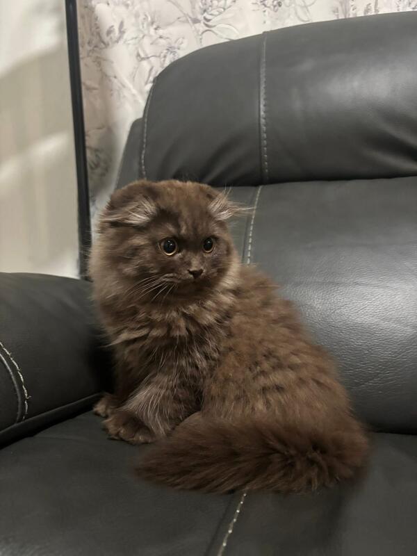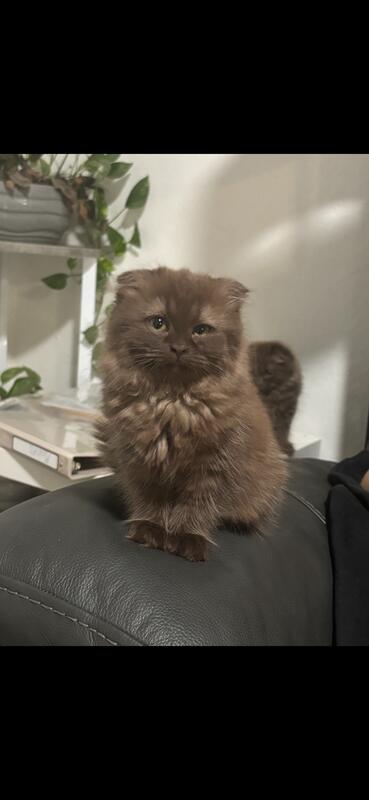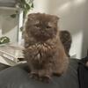 message absolynn about this ad We have a beautiful 17 week old chocolate Scottish Fold kitten available. He is a longhaired male that is incredibly friendly, curious, and confident. Not much fazes him! He has been lovingly handled since birth and is well-socialized with people, large dogs, and other cats. He will go home with his health certificate, rabies vaccine, and microchip. If you have any questions or would like to learn more about him, feel free to call or text me. Im happy to chat! He will be placed with a serious, committed home only. |