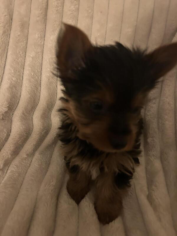 8 week old Yorkshire terriers for sale 1st shots, tails decked and wormed. Asking