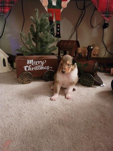 message candvross about this ad Rough collie puppies born on 12/8/24. I have 3 girls and 4 boys available. They will come vet checked with first shots and dewormed. They will be ready to go home on 2/2/25. Puppies are handled daily by me and my children. If youre interested or have any questions feel free to contact me at 731-441-7020 |