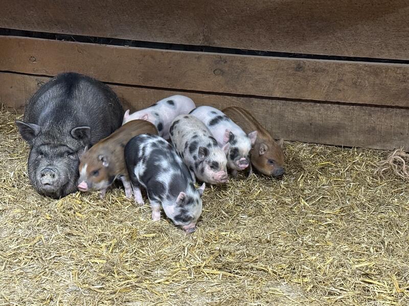 We have a little of mini piglets who are weaned and ready for a new home!