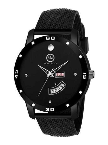 message rohinee about this ad Product Code: 10454392 Display: Analogue Movement: Quartz Power source: Battery Dial style: Embellished round brass dial Features: Reset Time, Date Aperture, Calendar Strap style: Black regular, silicon strap with a tang closure Water resistance: Water Resistant Warranty: 1 year Warranty provided by brand/manufacturer Comes in a signature MONTVITTON case Dial Width: 3100mm Strap Width: 22 mm This impressive, trendy watch from MONTVITTON is sure to draw attention when you tell the time. Match this black piece with slim jeans and a basic tee for a super-cool date outfit. Wipe with a clean, dry cloth when needed httpsmyntr.it/vjv4X3H |