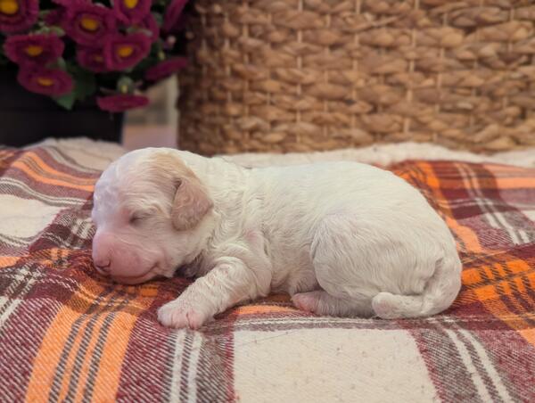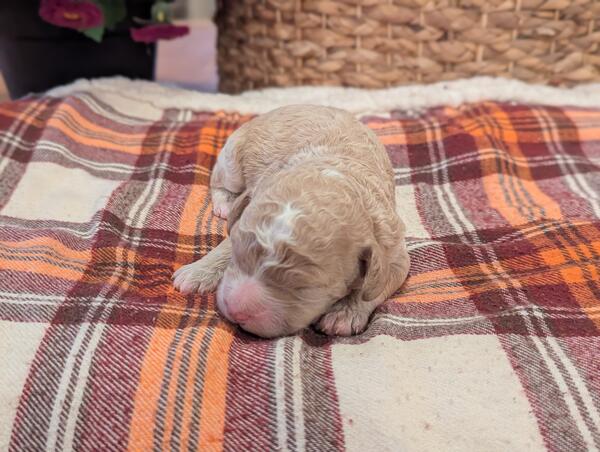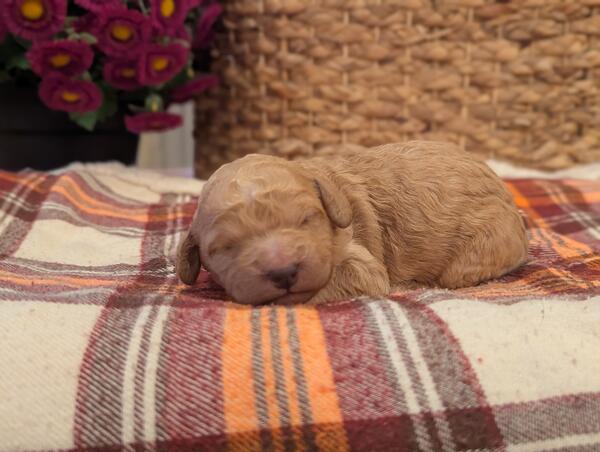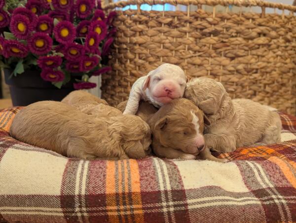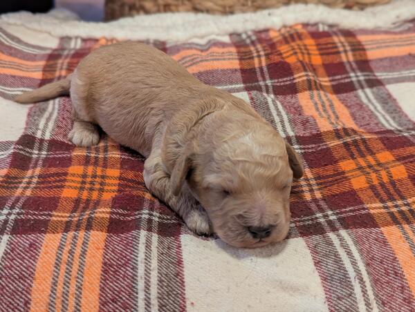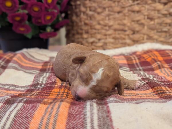 message alisonthies about this ad We are happy to announce that we have a sweet litter of five multigen F1B mini goldendoodle puppies available to meet their new families! They were born October 31 and will be available to go to their forever homes on December 26. They are playful, cuddly, and so much fun! Their Mom, Kenzie, is a 20lb F1B goldendoodle that has exceeded our expectations since the day we met her. She is loving, smart, eager to please, and loves to ride in the car. This is Kenzies second and final litter. The puppies' dad is Weatherby, a beautiful 26 lb auburn F1B goldendoodle with white markings. Both parents are fully hypoallergenic and non-shedding. They have had a full genetic screening and are cleared for genetic conditions, as well as hip and elbow problems. Puppies will be fully up to date on all vaccines, dewormed, and vet-checked for any health issues. They will be well-socialized with small children, adults, cats, and other dogs from birth, and we will also begin potty-training before they go home. They are low to no shedding and are expected to be about 20-25 pounds. Your mini goldendoodle puppy will come with: Fully updated vaccines Vet-checked for health issues One year genetic health guarantee A leash, collar, and blanket A bag of puppy food There is a $200 deposit to reserve a puppy. The remaining $1600 is paid on the day you take your puppy home. For more details, call or text (269) 744-2745. You can also feel free to set up an appointment to meet the puppies before their rehoming date! message alisonthies about this ad |