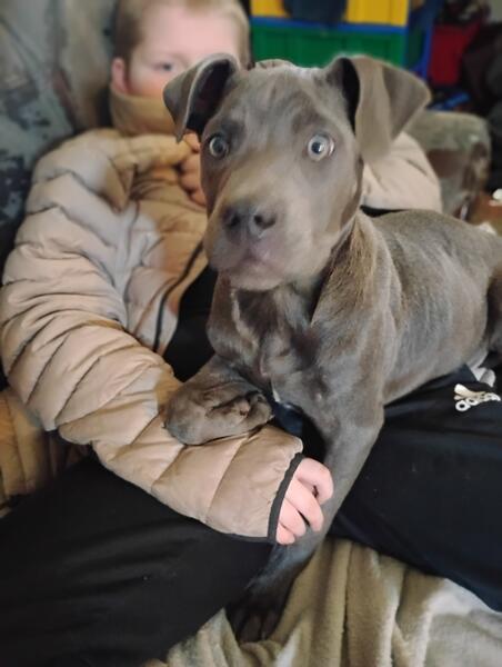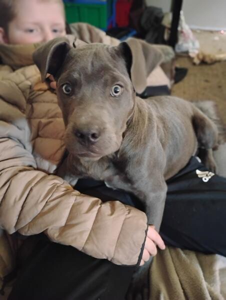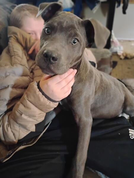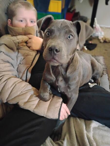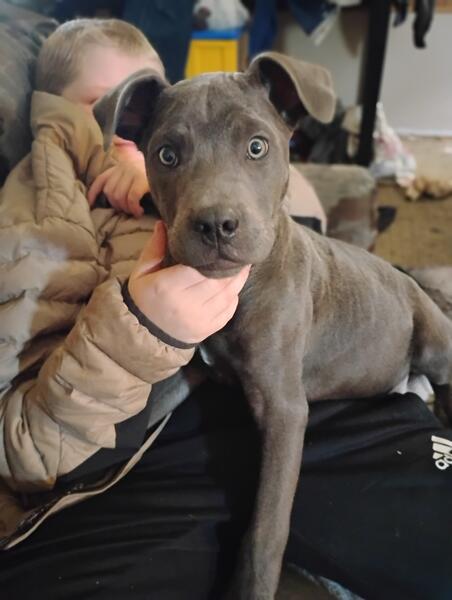 message cgmlc1976 about this ad We have one male blue puppy left. Hes a big boy. Hes mastiff mix. Very sweet good nature. Hes going to be about 100 pounds full grown possibly bigger. Hes 14 weeks old. Loves kids and cats also other animals. Will make a great addition to the family. Crate trained. And house broken. Hes a great guy. He has zero control issues and has a happy go lucky personality. |