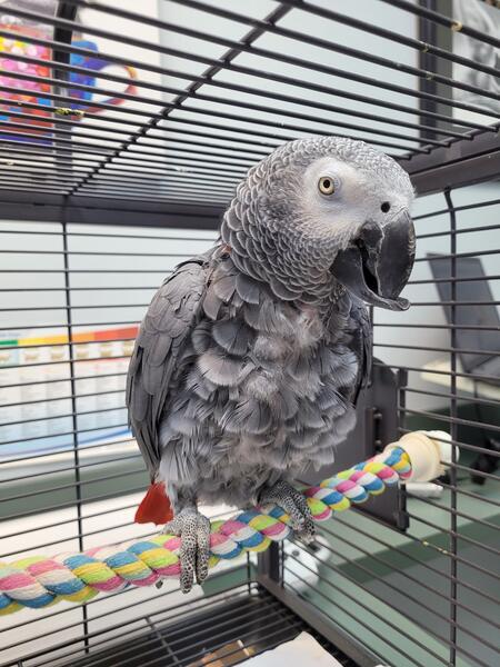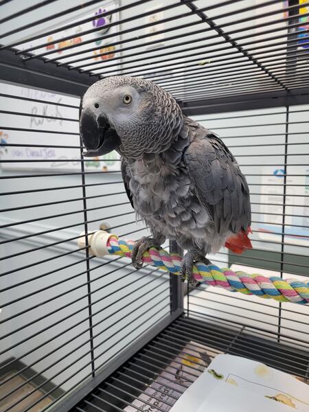 message parks4 about this ad 14yrs old Congo African gray needs a loving home I rescued him and not able to care for him like I thought. Does have to go the vet every 3mon due to beak overgrowth due to past owner only giving him seed diet. Comes with large cage with play top and a play stand all including any food left over and travel cage. Adoption fee is firm due to making sure he goes to a family who understands his needs and care. I can email or text pictures and videos for whatever reason I can't get them to upload on here. No cash is exchanged until met in person for pickup due to scams. Cash only He has all his feather grown out now on his chest he doesn't pluck it at all talks and will step up prefers men but will go to women. Can't fly due to past owner clipping wings severely short Vet isn't sure if they will ever grow back fully due to them cutting them like a "chicken clip" vs a parrot wing clip. If pictures are shown it shows him before his beak trim where his bottom jaw beak is overly grown and then it shows afterwards where his beak was trimmed by the Vet that I use in Charlotte North Carolina. message parks4 about this ad |