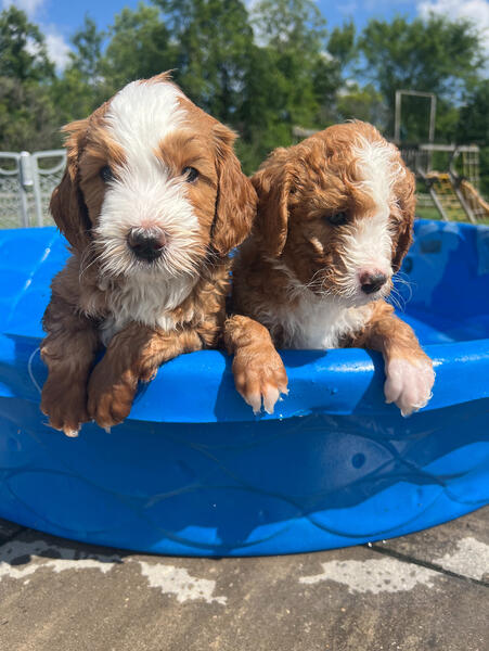 message mahre32 about this ad We have many Bernedoodle puppies, 9 weeks ready for homes, we have Tri, Merles, tuxedo colors, vet checked, first vaccinations, deworming dew claws removed, health guarantee, 30 days of pet insurance, parent are both genetically healthy tested and have a clear health panel, and they come with alot of take home items. Puppies are raised with kids, cats, other dogs, and chickens. Starting at $2000. |