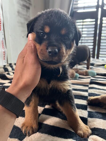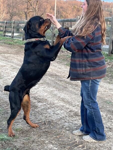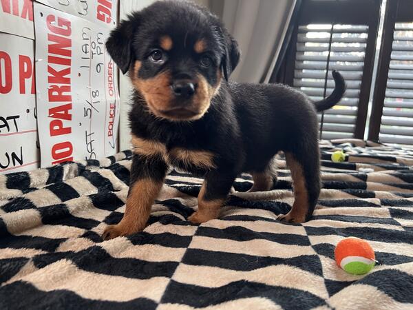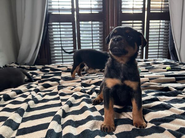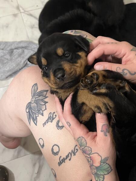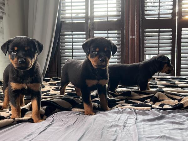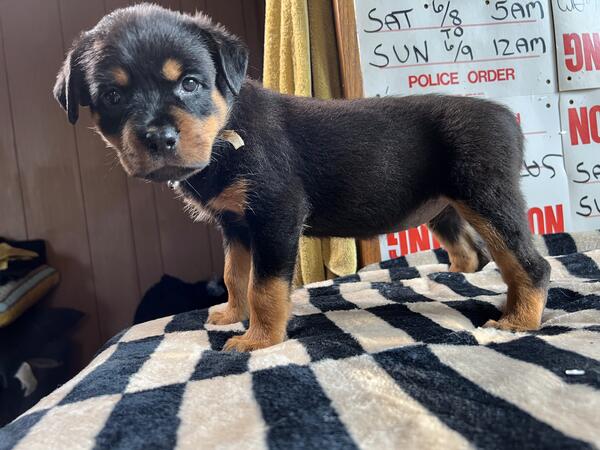 message dogsarebetter2 about this ad My very first Rottweiler Brooklyn Von Franklin has finally had her very first litter. ready for adoption their forever homes. Dew claws removed, vaccinated, birth certificates, dewormed, vet records, transfer of ownership, potty trained on puppy pads and turf most confident litter I have ever seen they really have strong personalities AKC stud Axel of Zanesville is a lean 145 in these photos (usually 155) and fathers a beautiful litter of nine. mom is in pics too (about 110lbs) fully weened from mother at 4 weeks, really showing their true personalities. message me on here and leave me your number and name if interested I will get back to you very quickly |
