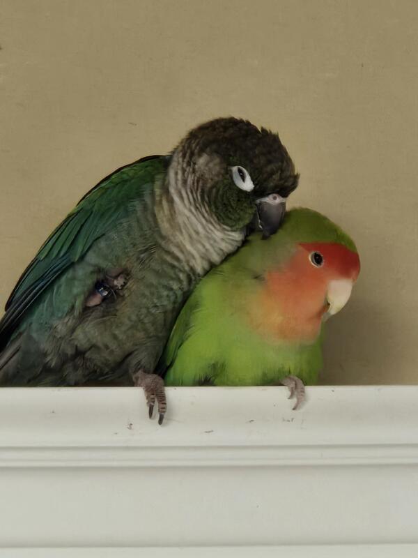 message kwghm7281 about this ad Must go together turquoise conure, Jade, bonded with lovebird, Lucky Bear. Come with large cage, stand, ropes, and food. Text Kristina at 616-510-8523. |