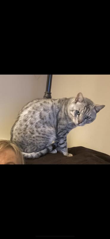 message babykittens4u about this ad Here I have for sale my 5 year old Silver Male Bengal Stud. Hes a Beautiful and Exceptionally Loveable Bengal who loves to talk! He lives freely in my home. He loves to cuddle and be a part of the family with everything we do. He is a Very Strong and Large Stud who certainly gets the job done! Hes had several litters and does a great job! Hes had up to 7 in a litter! He has incredible markings! Perfect in Every way! The picture of him where you see red to the left of him is him cuddled on my side! Hes such a Loveable baby but also a Very Aggressive Stud! He is TICA registered and his father was a Grand Champion! Ive decided to no longer breed. Please feel free to TEXT me instead of leaving a message on here as I will get them much quicker! My phone number is in a picture above also! Four Four Zero 477 Four Seven Seven Two |