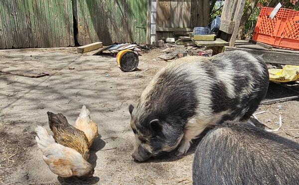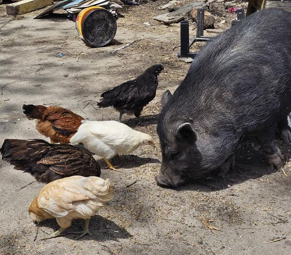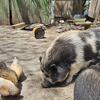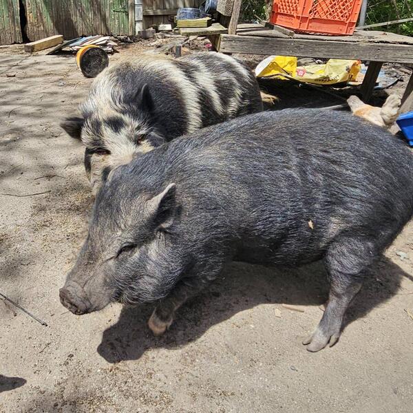 message nikkispetrescue about this ad I'm rehoming these 2. They are both between 1 and 2 years old. The black 1 is Hamilton. I think he's a Julianna mix and around 70lbs and neutered. He was inside until it got warm and we got his "girlfriend" Petunia, who refuses to come inside. Petunia is a potbelly/julianna mix I believe, and I would guess she weighs around 150lbs. She's intact. Hamilton really enjoys human affection, and Petunia isn't a big fan. Both are use to kids and dogs. They are pretty attached to each other and would have to go together. I'm located in Saginaw. |