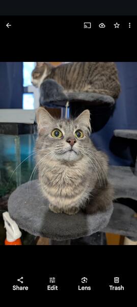 message byronjames about this ad We believe she is about 4 years old. Her owners abandoned her and weve been taking care of her since. She is current on vaccinations. She was never fixed. Were about to move and cant take her with us. She loves kids, people, other cats and could care less about dogs. Shes been strictly indoors. Loves to cuddles, give love nibbles, make biscuits, and play. Located near Saginaw. |