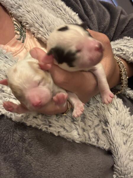 message dawnea86 about this ad We have 2 beautiful micro mini Bernedoodles that will be eight weeks December 22, 2025! I have two males available! These are third generation and will be very very small. Both parents are under 10 pounds. First round of shots and a small care package will come with the puppies. Born 10/27/25 both Males, one white w dark marking the other white w light beige markings. Please feel free to text me at 740-274-6353 with your name and the word BERNIES to take one home |
