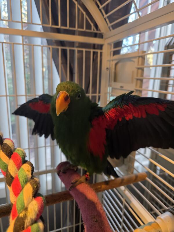 message bella123kona about this ad Eclectus parrot male 12 months old he is very sweet comes with his cage looking fir some one with experience with birds looking for a loving home |
