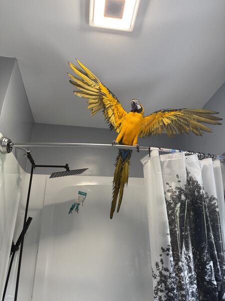 message jessikajhoffman about this ad 16 year-old blue and gold macaw refer a woman owner. He takes a while to warm up to you but once he does, hell be your best friend he comes with his cage that is very large and a tree stand |