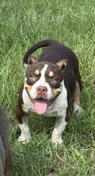 message cryteebyeme50 about this ad 1 male micro chocolate tri Current on vaccines all three puppy shots done and rabies . Ears have been don Ears were done All 3 puppy shots done .2 health certificates . He is on Next Guard , ABKC registration papers in hand if you are not serious and ready to pick up immediately message me . Wonderful disposition out standing pedigree. |