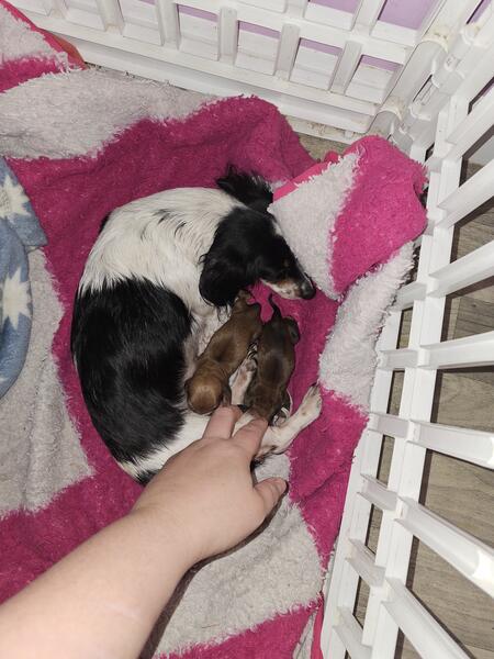 message catgirl54379 about this ad Mom is a miniature pie ball long hair and dad is a standard smooth red coat . Both parents are AKC registered but puppies are not do to them being a mix between miniature and standard. 2 males available in 9 weeks Both are super tiny at the moment but not sure on size they will take after yet but believe more on the small size. They will have first shots, microchip, and dewormed by owner not vet , if you would like a full vet check pric will go up |
