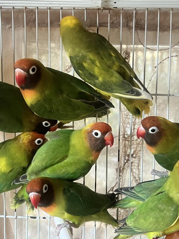 Hard to find Black Cheek Lovebirds. Young birds between 4-12 months old. Not tame. Can ship.