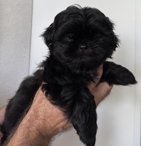 message mfleszar about this ad Black silky Shih Tzu puppies for adoption. Three males and one female. Health certificates with first series of vaccinations. We own both mom and dad - both wonderful temperaments. Dad 15 lbs and mom 12 lbs. Babies socialized with other dogs and family members. AKC Registration. Puppies are amazing. Strong blood line. Full breeding rights. Message me for more information. $1500 with health certificate, AKC Registrations, and rare coloring. (Female SOLD) |