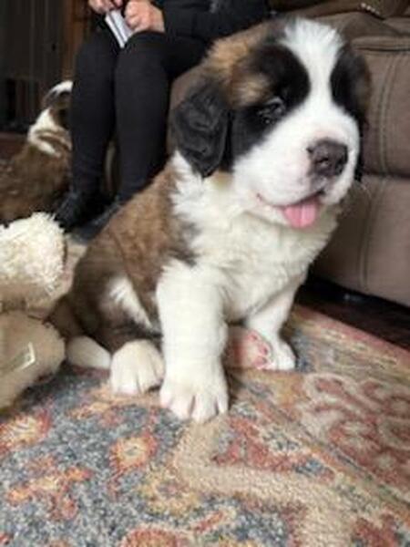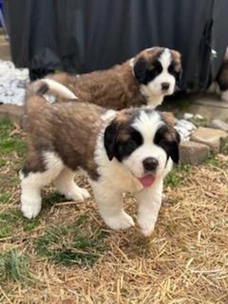 message fclnt3412 about this ad I have a litter of 5 beautiful CKC saint bernard puppies . 3 female and 2 male. They were born January 18th 2025 Litter has been vet checked twice and have clean bill of health. They have their first shorts and dewormed. They will be ready for adopting march 15 2025. The puppies are using training pads and a pet door. They are very smart lovable puppies.mo. is pictured with puppy dad is standing on fence . You can contact me at 704-305-4982 |