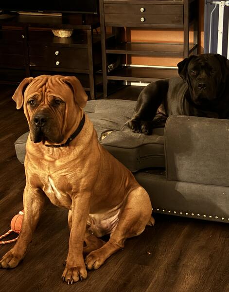message justmyg about this ad Two male South African Boerboel puppies looking for love. Seven weeks old and already weighing in at 20lbs each. Tails have been docked and dewclaws have been removed. First shots have been administered, and dewormed. Puppies are a week away from being allowed to go home to their new homes. Just in time for Valentines Day Interested? Text or call 231-760-0074. Serious inquiries only. Ready to go on Valentines Day. Bring home this little love this Valentines day! (Parents shown in last 4 pics. Father is the brown dog) Price is negotiable, and Bartering will be considered. |