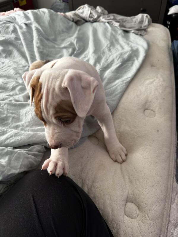 message kisses1274 about this ad Hi have 1 male Staffordshire/pitbull mix left he is 7 weeks old he was born July 1st he has beautiful green eyes he is such a big baby loves to cuddle and sleep loves kisses and treats! He is great with other animals and is almost potty trained very smart and alert boy! He is not going to be a huge dog maybe 50 pounds. Text Amy 248-410-5923 |