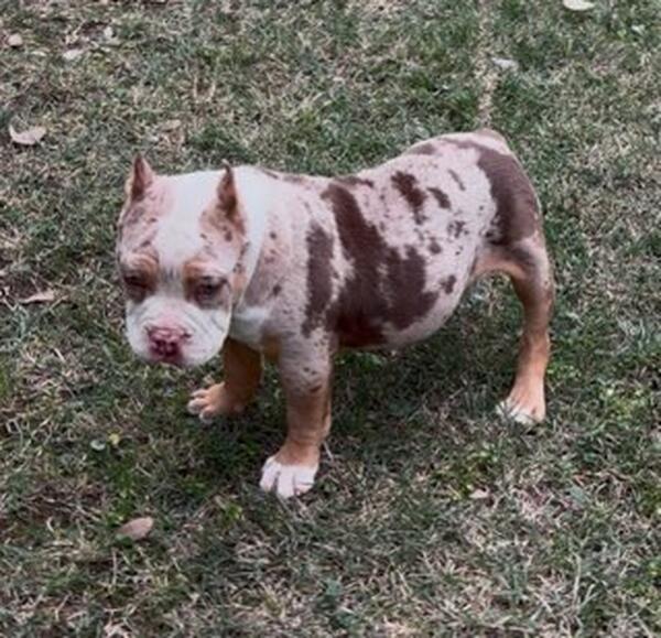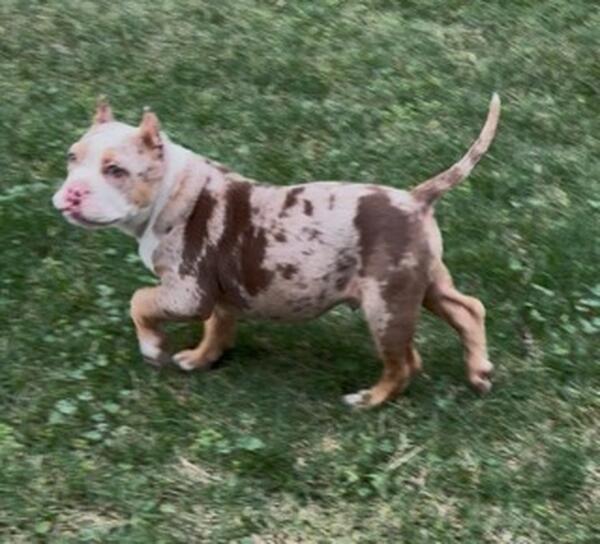 message deorobullies about this ad American Bully Puppies available Chocolate Tri-Quad Merle on Lilac base. Exotic Type full tail. Excellent Bloodlines. All shots & wormed. Big head, chest, rear, bones, muscles. Must see to appreciate. For more info. pics and video & more, Contact Dan Sr. (559) 718-5460 |