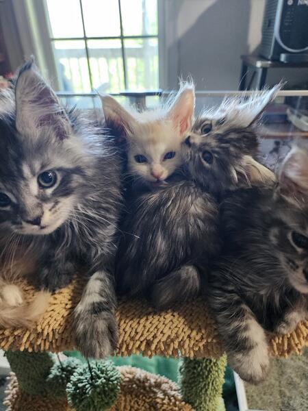 message eaglesfann212 about this ad I have 6 kittens left, they are all super sweet and friendly. They will be 8 weeks old on the 25th of July, but I like to keep them longer (minimum 10 weeks) so they can receive their feline leukemia shot. They will come with all shots, wormings, be litter trained, and vet checked. They eat baby blue buffalo, high protein. Im glad to FaceTime and send more pics. (I have mom and dad in home) |