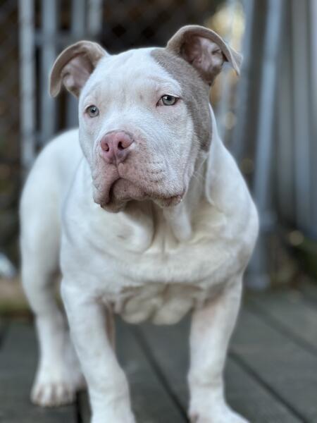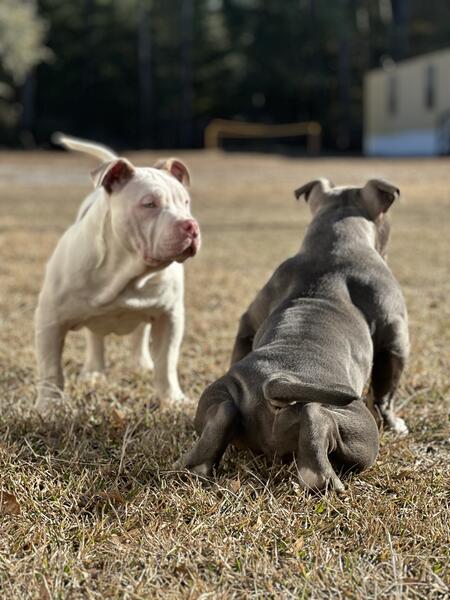 message k33 about this ad Currently, we have 1 male pocket American Bully pup available going for a good price (white pup His bloodline consists of Bape and Remy line. We have vaccinated, dewormed, ear crop optional, and he is UKC papered Serious Inquiries only 9106043444 |