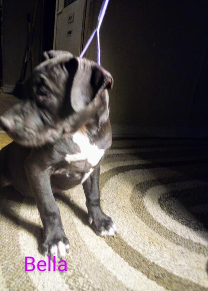 message cntrp1055 about this ad 1 Female left. Her name is Bella. She is black with white paws and chest. She is 17 weeks old, which is still a great time for training. American Bully Standard Puppies. Dad has papers mom does not. Dad of pups is a blue fawn standard bully. Mother is a red pbt. All pups have not touched outside, and litter/pellet box trained. All pups had 1st shot& 2nd shots and wormings. $85 each |