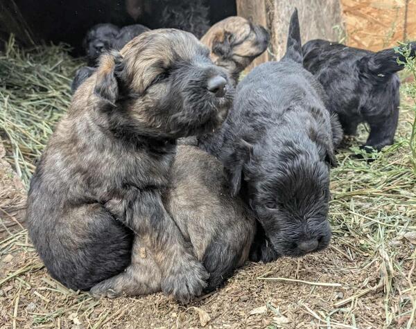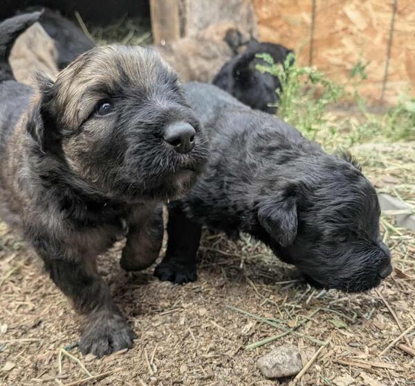 message bgtpq4592 about this ad Healthy happy home raised Bouvier puppies. DOB August 13, 2025 Bouviers are really super family dogs they do great with families and kids and other animals. Bouviers bond very well with their families, they are very loyal! We have been lucky to have owned and raised Bouviers for many years and we have found that once a person has had one of them they tend to want to continue to have one as part of their families and folks will contact us hoping for another one. Our female, Olive, is a classic black Bouvier and our male Martini is a blond/brindle. You are welcome to come to our farm and meet the them and mom and dad, they are our family/farm pets. If you are further away we can assist with shipping puppies and/or possibly deliver. $1000.00 |