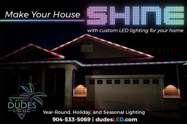 message dudesled about this ad Christmas / Holiday / Architectural Permanent Lighting made easy! Never have to put up Christmas lights again. With DudeLED lighting your lighting is permanently installed and customizable to EVERY season! - Christmas - New Years - Halloween - Fourth of July - Hannukah - Off-season accent lighting Our product is ordered straight from the factory and hand assembled to create a truly custom light show for your home. The light system is extremely power efficient and requires no maintenance. Contact DudesLED today for a free quote and reserve an installation date! E-mail: contact@dudesled.com Phone: 904-533-5069 |