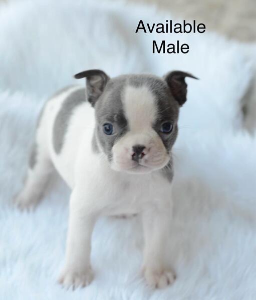 message swtsph9378 about this ad Boy 3 is a blue splash. We are so excited to show off our new colorful litter. Mazey is our only breeding female Boston Terrier and she throws almost all colors and patterns! They are AKC, mom is a beautiful brindle and dad is a splash lilac. Please email me for any questions you have about this litter or you can text me. |