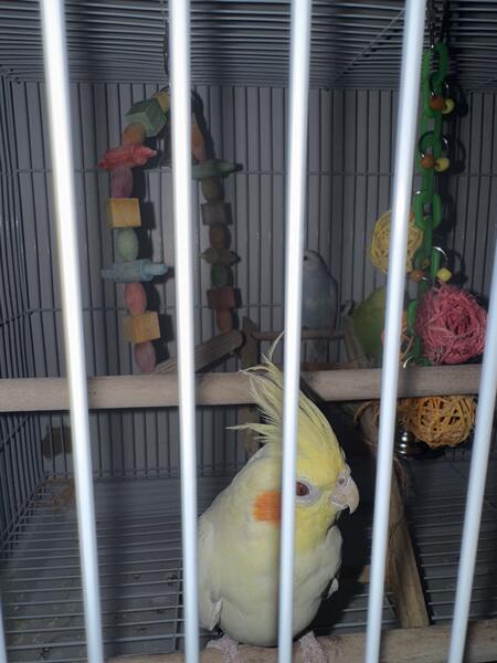 This bird needs a loving family. She is a friendly girl and the cage is provided for free.