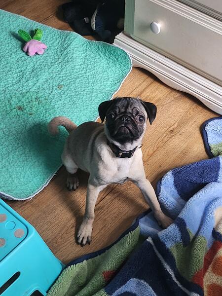 message kywildcatsfan about this ad CKC Pug male born 12/24/24. Has had all shots and wormed. Embark tested and clear. Gets along with other dogs. Never been around cats. My other dog doesnt get along with him and I am afraid he will get hurt(which is the only reason I am trying to sell him Laid back, loves car rides, playing with toys and loves to be in your lap. Working on housebreaking, goes outside or uses puppy pads. Will come with CKC registration, pedigree, toy, sample of food, collar and leash. |