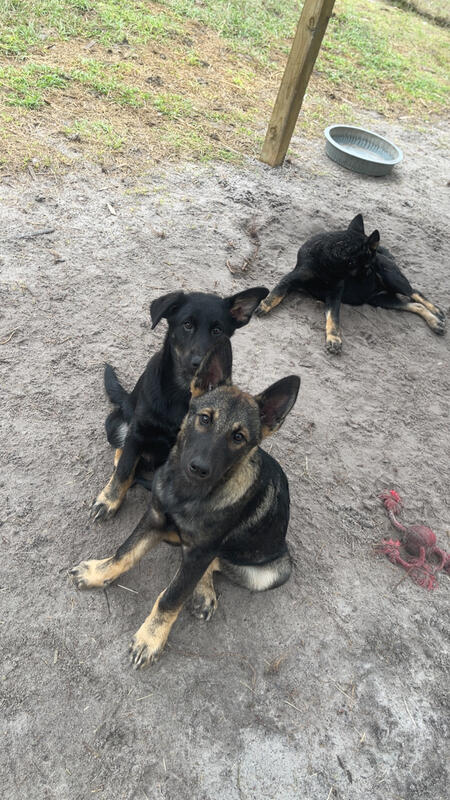 message xclusive1k about this ad 2 female 1 male all black with brown socks utd on shots and dewormed Both parents on site They have been raised with farm animals and other dogs besides parents also crate trained asking 300 obo Dad is Belgian mali Mom is Alaskan malamute If any questions feel free to ask 352 340 0623 |