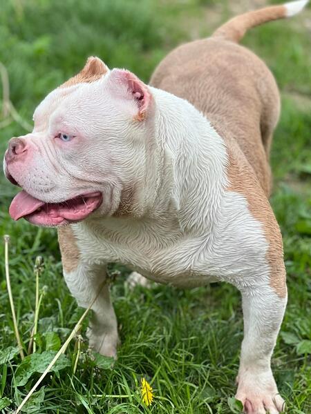 message thefamilyman about this ad my boy prime time is a 2 year old tan merle american pocket bully & ready to work this boy was born to produce, i also have pictures of mom an dad posted! an heres his pedigree below Primes Dam: (Stein-line Kennelz Chanel (Louis V, Clicqout, & King Dusse) Primes Sire: (Luxury Showtime Bulls Offset (3Xs Ch Magoo,Crazy Eye Clyde,Blaze Blah & Box Office) for more information about studs an puppies dm me on instagram @DoughBoyBullz |