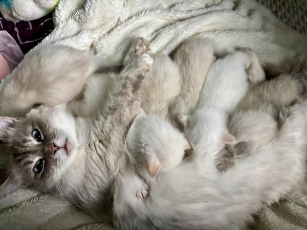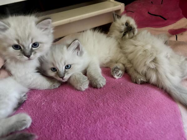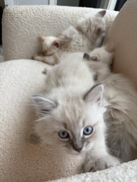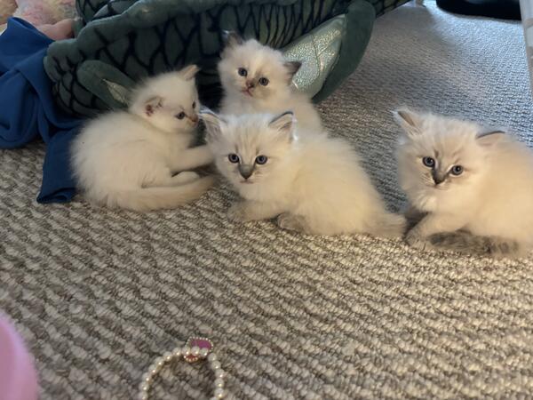 message crlsr2792 about this ad I have 1 ragdoll / Himalayan male kitten left that was born October 1st and will be available starting December 5th. 1st shots will be included. I have sold 1 prior litter, year last year and completely sold out so we did 1 more litter. There were 5 males, 1 female, two flame, 3 gray and 1chocolate ragrolls. Picture of mom/dad, and the male I have available. We are located in Newbury, Ohio to view the kittens. |