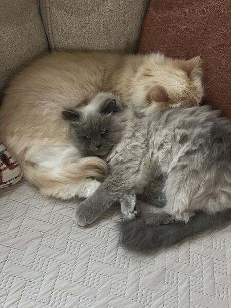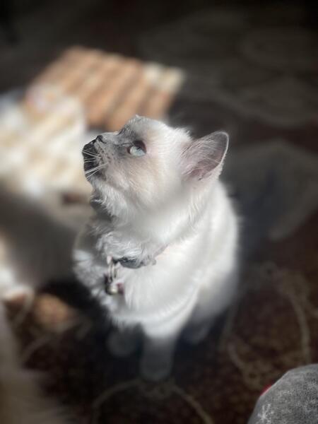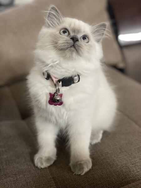 A 1 and a half year old ragdoll. She is very friendly and cute. She is playful and loves playing with other cats.