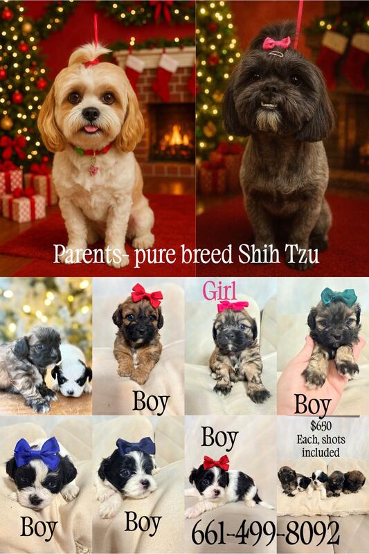 message pintoshihtzu about this ad Holiday-Ready Shih Tzu Companions Ready December 18th We have a small litter of purebred Shih Tzu companions who will be ready for their new homes December 18th, just in time for cozy holiday cuddles with their future families. They will come with: First wellness visit + documentation Initial vaccinations Puppy-pad training started Raised in a clean, loving home environment Both parents on-site Shih Tzus are known for their non-shedding coats and being very allergy-friendly, making them a wonderful choice for sensitive families. These little ones have soft coats, gentle temperaments, and that classic Shih Tzu sweetness affectionate, playful, and perfect for companionship. A rehoming fee applies to ensure they go to committed, responsible homes. Feel free to message for more details, photos, or to schedule a meet-and-greet. 661-499-8092 |