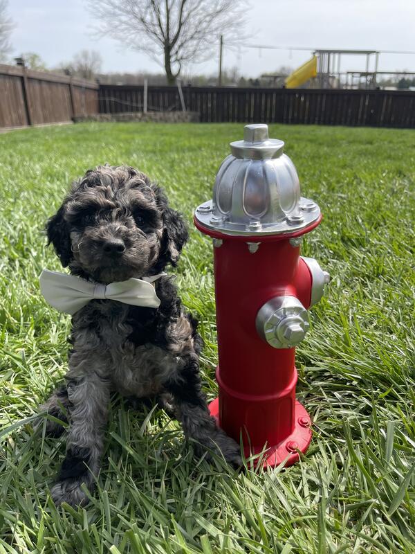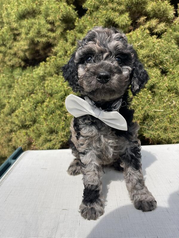 A boy Merle miniature Goldendoodle who is so cuddly! Expected weight 13-15lbs